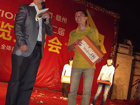 晚間舉行的抽獎活動上獲得今頂獎品的業主