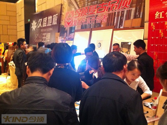 這次在千島湖超級團的舉辦中有很多品牌為了答謝業主厚愛都做了充分準備。今頂也為了答謝業主準備了紅包墻、簽單禮等禮物。團購開始之后業主們就在各個品牌的展位上穿梭,今頂展位在展位上為業主準備了大量的對比實物、剖解產品、產品部件等物品,目的就是為了業主們能更加深刻、直觀了解今頂產品的優質品質!在千島湖,今頂復古吊頂一直給消費者高端品牌的形象,這一次千島湖展位也為現場業主出了眾多今頂不同風格的產品式樣,以便消費者能在視覺上看到今頂那不同尋常的美!