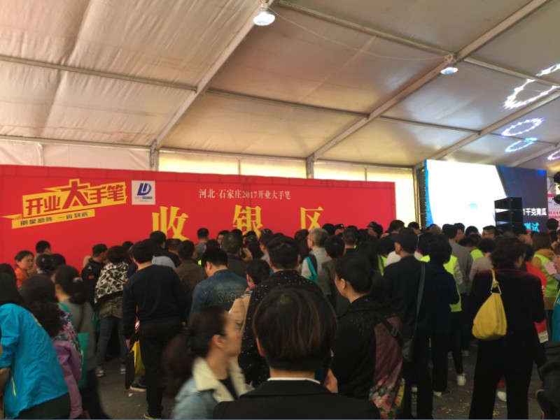 還未到活動時間,現場就陸陸續續的有人開始入場,時間一到更是蜂擁而至。石家莊的4月15日陽光明媚,二十七八度的天氣溫暖慵懶正是舒適。活動現場與之形成強烈的對比,人聲嘈雜好似枝頭蟬鳴,氣氛火爆堪比八月的夏季,溫度直線飆升。