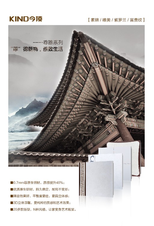 “尊雅”提升扣板厚度來體現品質感,與傳統板材較之其隔音好、平整度好,不易變形。堅守每一次的綻放都是生命最完美的呈現,“尊雅”它是生活,品位與品質的象征。