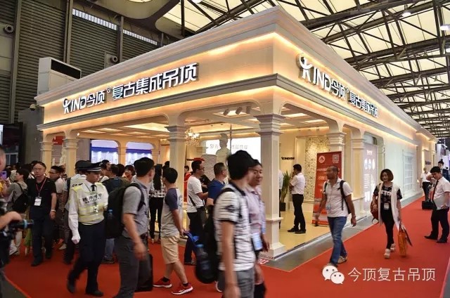 2015年6月,今頂以“復古盛宴,財富共享”的參展主題亮相第20屆中國(上海)國際廚房、衛浴設施展覽會。純正歐式復古風格的展廳,超過350平米超大展出規模、底蘊深厚的產品設計、尖端智能的科技以近百名意向客戶現場簽約的成績位列上海廚衛展集成吊頂行業的“領頭羊”寶座。