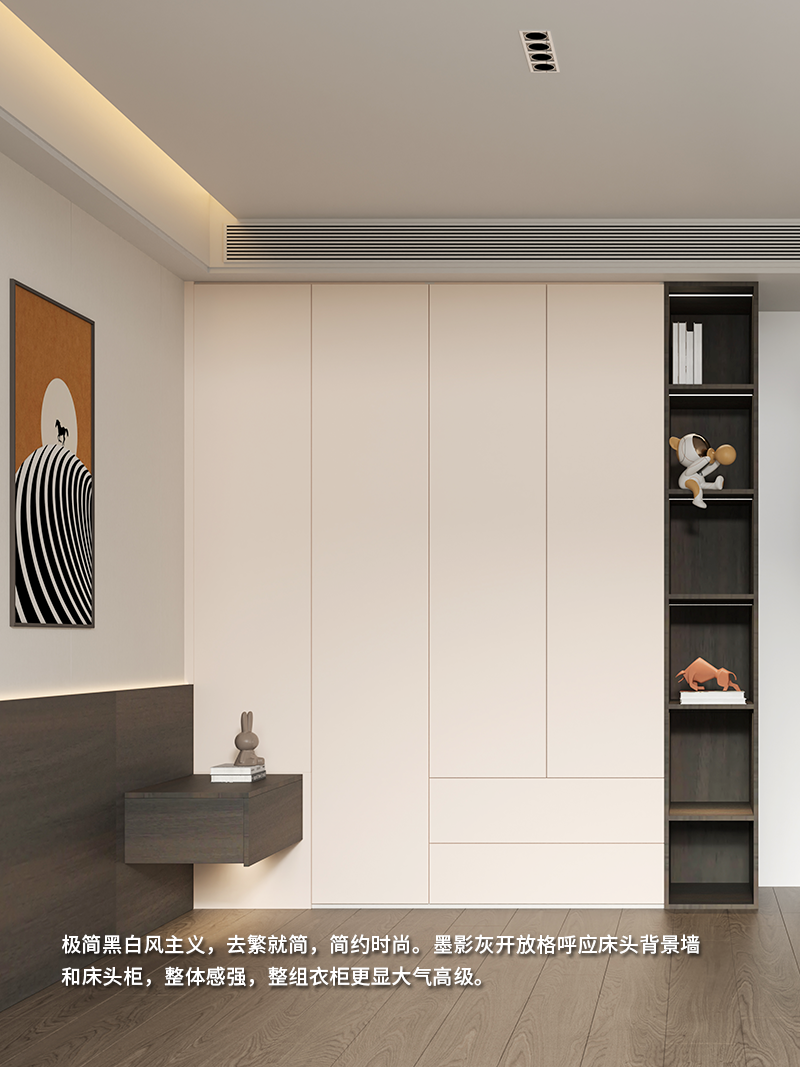 除了黑白風,該組衣柜還能適配現代、輕奢等多種風格。